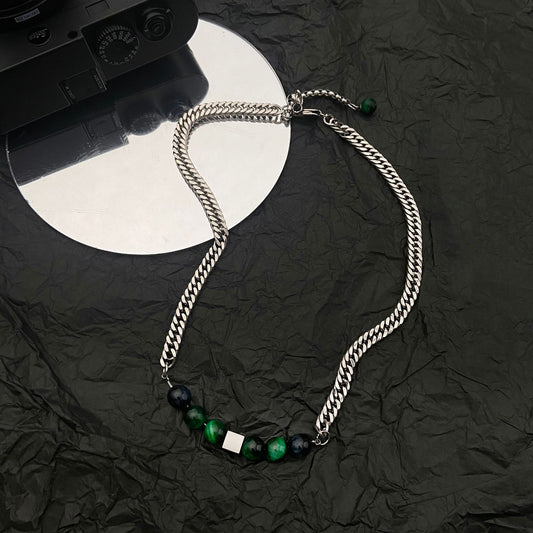 Green Tiger's Eye チタン キューブ キューバン リンク チェーン